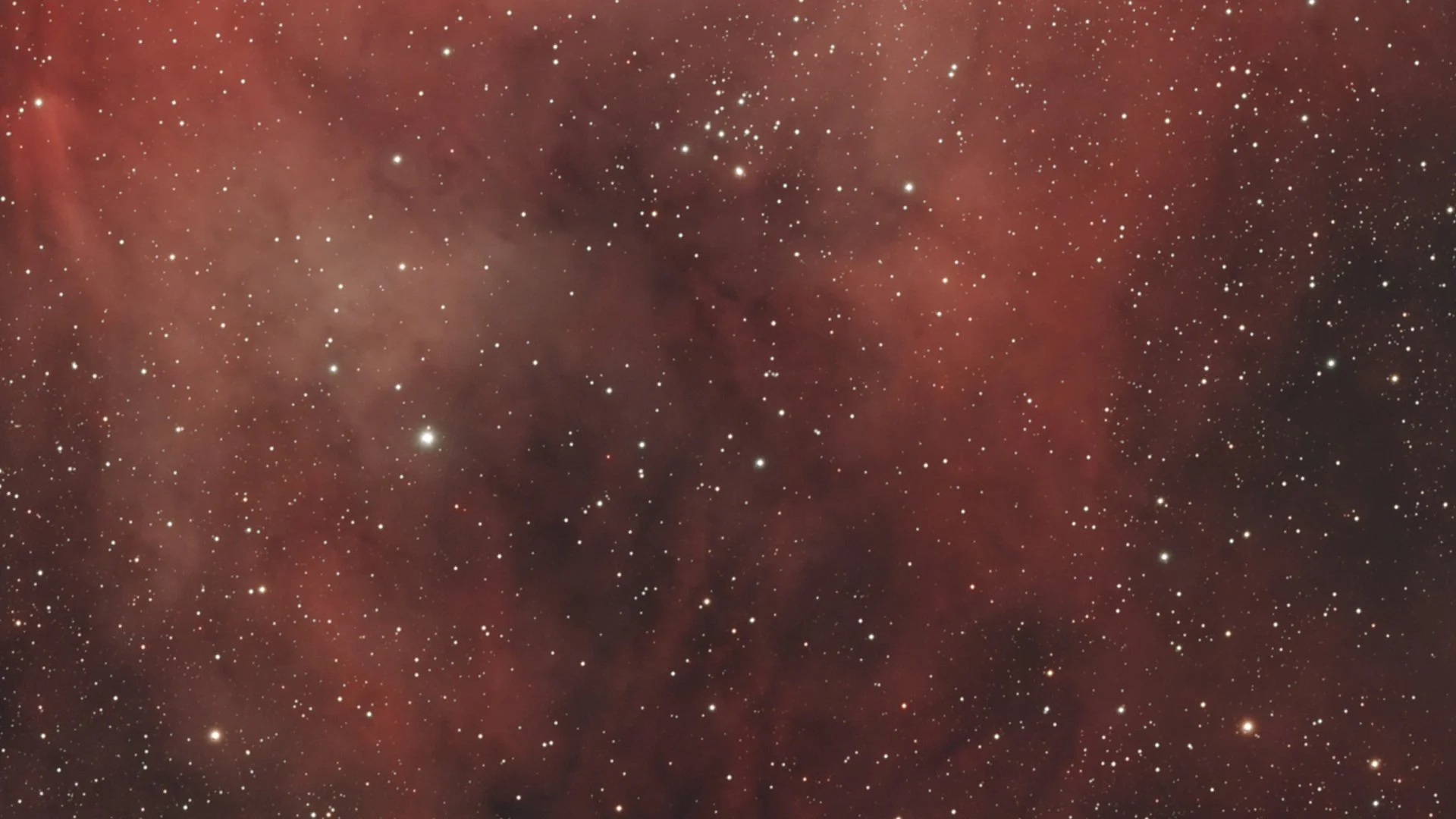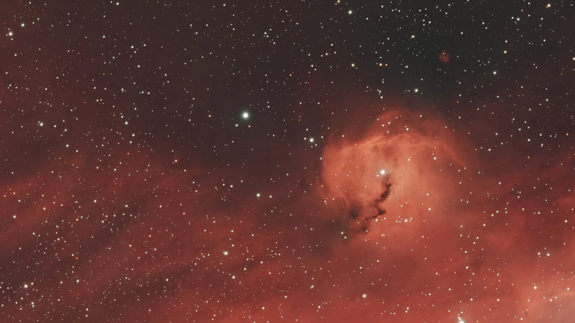 The Seagull Nebula is one of those regions where scale reveals itself slowly. Known scientifically as IC 2177, it stretches across a vast area of sky along the border between the constellations Monoceros and Canis Major, about 3,700 light-years from Earth. What looks like a single object in photographs is actually a long chain of emission nebulae and dark dust clouds, illuminated by young, massive stars embedded within the gas. Its light is dominated by glowing hydrogen, tracing where star formation is actively reshaping the interstellar medium.