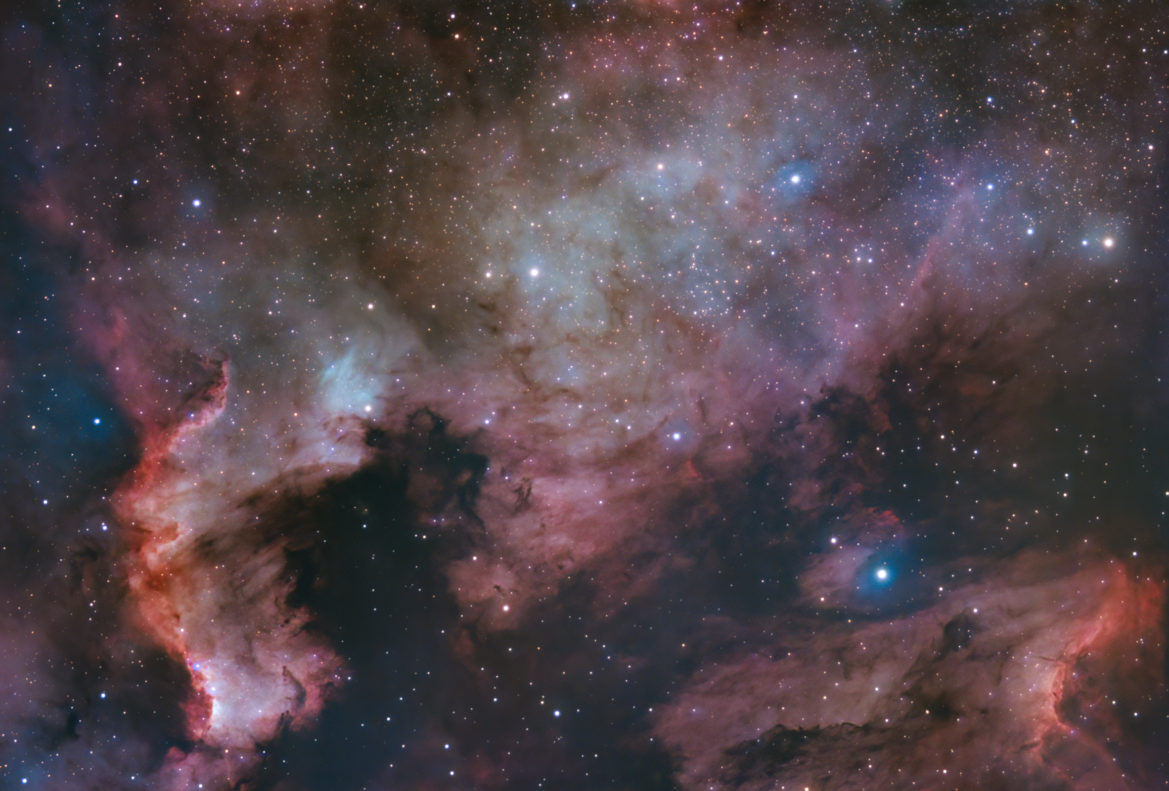 I started my Astrophotography journey on June 16th 2022, at the time the North America Nebula was perfectly positioned for my first test, It was pure luck I chose a bright target, I had no idea, I started the night shooting it then moved on to shoot the Andromeda Galaxy a few hours later, I didn't have any equipment at all, just my DSLR camera with a 80mm lens that was not manual, so the focus ring didn't have a stop making it more difficult to properly focus, I never heard of a bahtinov mask at the time too, and the cheapest Manfrotto tripod. I had to take 50 shots probably less than 5 seconds each, and re align the target, rise repeat at the time I did not have any mount so I used my iphone to find the targets. So much happened until the North America Nebula came back in the sky, so a proper tribute to revisit this beautiful target. Here is a progression on this target, I used this nebula as my learning object, and I did re-shoot it often as my learning progressed so it is nice to see the evolution.
